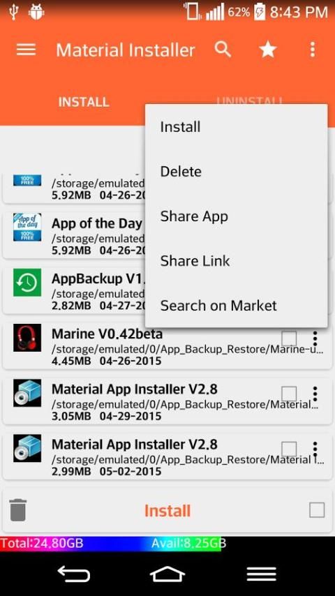 यह एसडी कार्ड पर सभी APK फ़ाइलों की सूची जाएगा, और यदि आप स्थापित करना चाहते हैं कि क्षुधा का चयन कर सकते हैं और क्लिक> उन्हें स्थापित करने के लिए बटन को स्थापित करें।