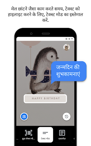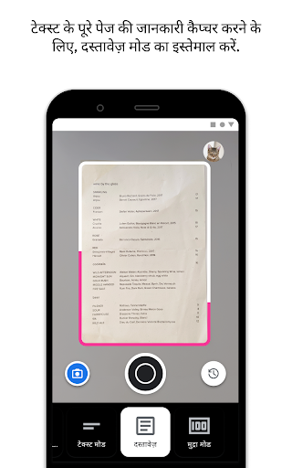 • दस्तावेज़ मोड का इस्तेमाल करके, टेक्स्ट का पूरा पेज पढ़ें. दस्तावेज़ का स्नैपशॉट लें. Lookout टेक्स्ट को स्कैन करेगा, ताकि आपका स्क्रीन रीडर इसे ज़ोर से पढ़ सके या इसे आपके फ़ोन पर ज़ूम किया जा सके.