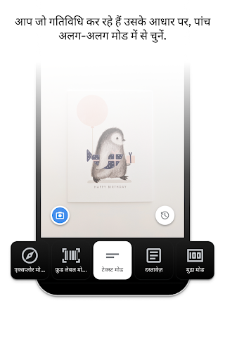 • बैंक नोटों की जल्दी और सही से पहचान करने के लिए, मुद्रा मोड का इस्तेमाल करें.