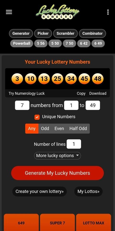 Lucky Lottery Number Generator app by LotteryNumberGenerator.net