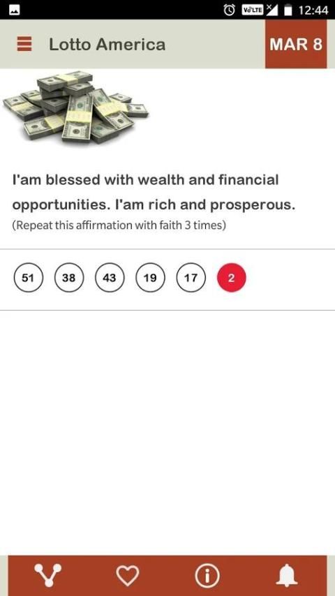 डेली आप दिन के लिए लोट्टो अमेरिका संख्या है, जो आपके लिए विशिष्ट हो जाएगा के साथ एक पुष्टि प्राप्त होगा। दिल के साथ अपने अभिपुष्टियों बाहर प्रार्थना और अपने नंबर जेनरेट!
