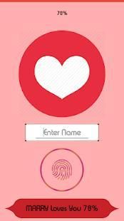 This love calculator app gives result on estimated value and you know no one can calculate 100% of love and affection. So, don’t treat aggressive with your partner if you find low love percentage. This application's intended solely for entertainment and has no intention to hurt the user feelings. No information is retained or stored by the software. Keep in mind that this is just a fun app. Don't treat it too seriously. This is not a "real" finger print scanning.