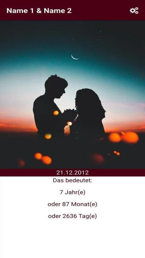 -Anzeige der Tage Monate und Jahre, entsprechend der Beziehungsdauer