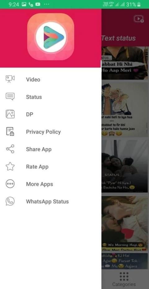 We have collected countless content such as Funny WhatsApp Status, Love Status Videos, Emotional WhatsApp Status, Motivational Videos etc. Just for you. Share feelings and earn love