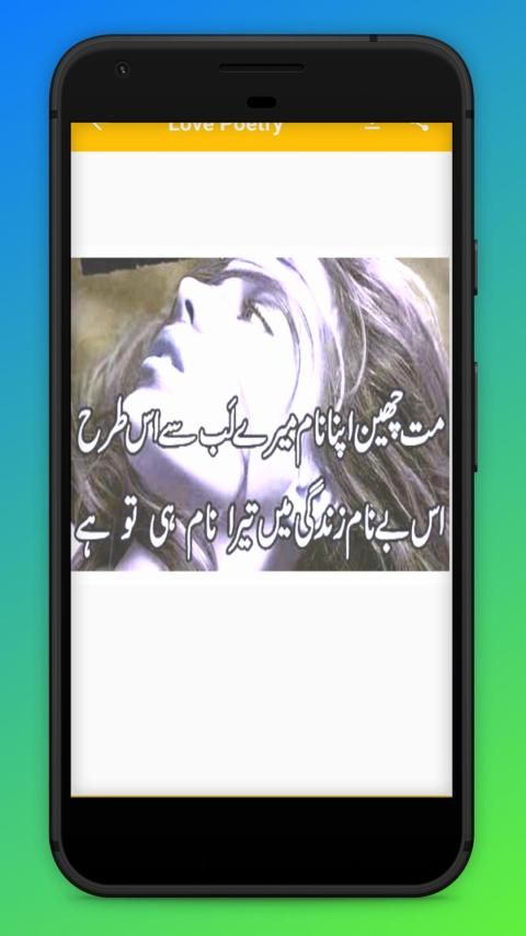 "Ishq Poetry Urdu" contains poetry about Ishq/Love/Pyar. This app contains the best poetry collection about love. The content of the app is in Urdu. This app will make you happy about its quality and its interface. This app will express your feelings about love for your partner.