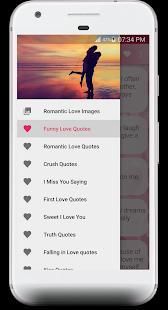 Romantic Love Quotes is a best lovely android application. It is a huge collection of Special Love Quotes – Love Saying - Romantic Quotes – Crush Quotes, Love Status, Love Messages, Love Images and Propose Messages for your LOVE.