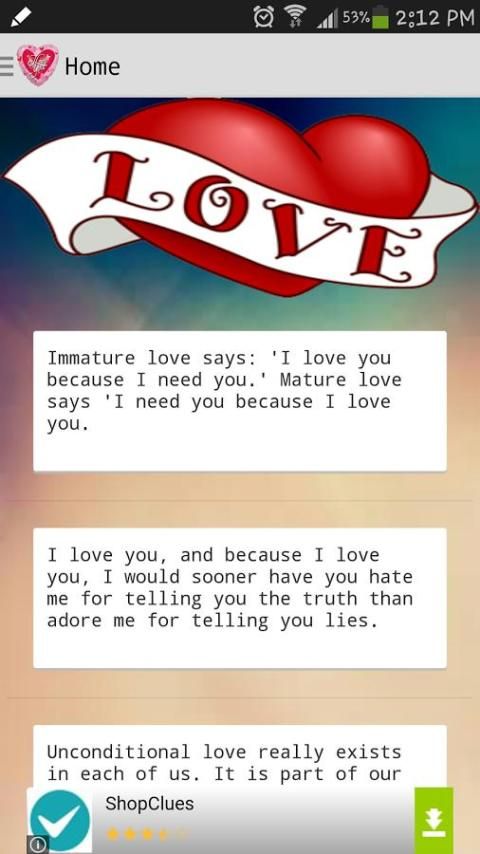 Welcome to the official store for application World. 20,000+ users downloaded Romantic Love Quotes latest version on 9Apps for free every week! More apps are free download here! This hot app was released on 2017-09-23. You can free download it from 9Apps.