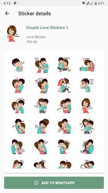 व्हाट्सएप स्टिकर के लिए लव स्टिकर का उपयोग इंटरनेट कनेक्शन के बिना किया जा सकता है, क्योंकि व्हाट्सएप स्टिकर के लिए लव स्टिकर ऑफलाइन उपलब्ध है।