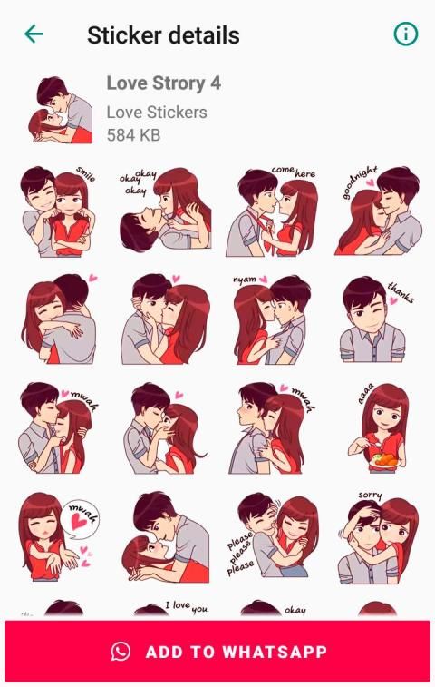 Send big hearts, love stories, cute couples, flowers, stickers for saying sorry, I love you stickers, I miss you stickers, love quotes, good morning and good night. You can even find cute fluffy animals that everyone adores.