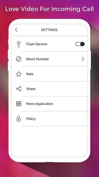 आने वाली कॉल के लिए प्यार वीडियो आपको उबाऊ छोटी तस्वीर के बजाय रोमांटिक पूर्ण-स्क्रीन वीडियो के साथ अपनी आने वाली कॉल स्क्रीन का उपयोग करने की अनुमति देता है। हालांकि, वीडियो के अलावा, एचडी गुणवत्ता में एक पूर्ण स्क्रीन फोटो सेट करना संभव है।