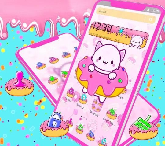 Apply the Lovely Cat Donuts Theme to enjoy with FREE Wallpapers and Icon Pack! Make your phone stylish!