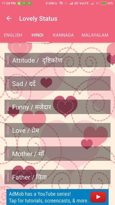 इतने सारे स्थिति लवली स्थिति आवेदन में हिंदी, अंग्रेजी, मराठी, तमिल, तेलुगु आदि की तरह अलग अलग भाषाओं में उपलब्ध हैं।