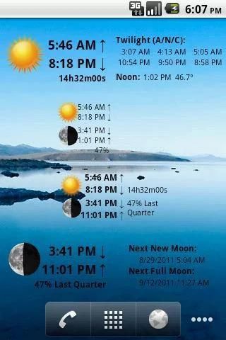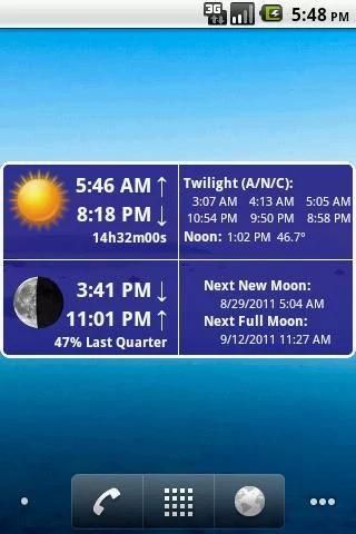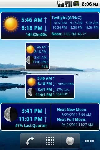 Set of wigets for showing times of sunrise, sunset, moonrise and moonset and more for your location: