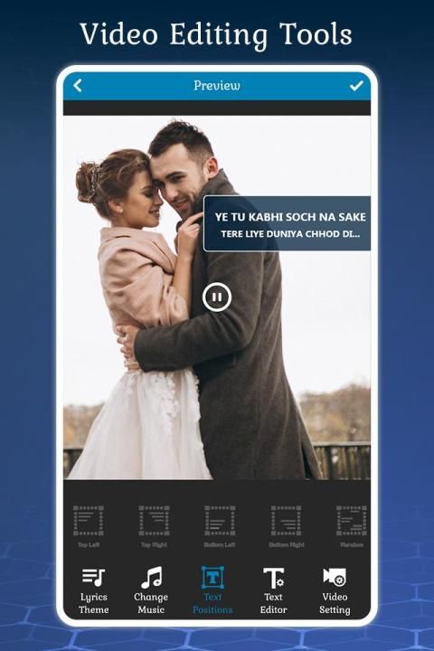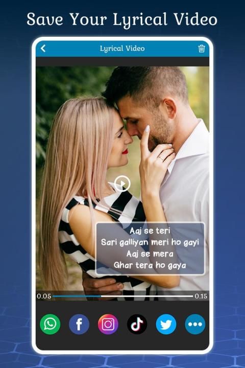 Lyrical Video Status Maker has large lyrical videos with different animated themes you can select your favorite themes and create one romantic song within minute.