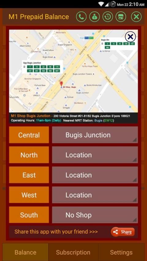 V1.8 M1 shops location added (Top icon), easy find M1 shops with maps, nearby buses and MRT.