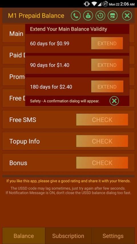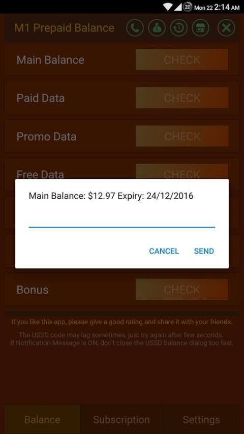अपने एम 1 प्रीपेड MCard शेष राशि की जांच एक नल, स्वत: यूएसएसडी कोड चलाता है। कोई ज्यादा परेशानी अपने MCard संतुलन की जाँच!