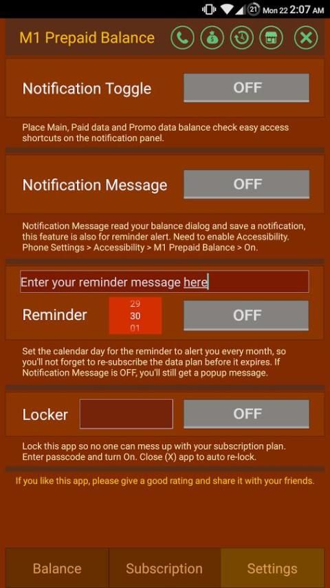 इस एप्लिकेशन को सिंगापुर एम 1 प्रीपेड MCARD संतुलन की जाँच के लिए है।