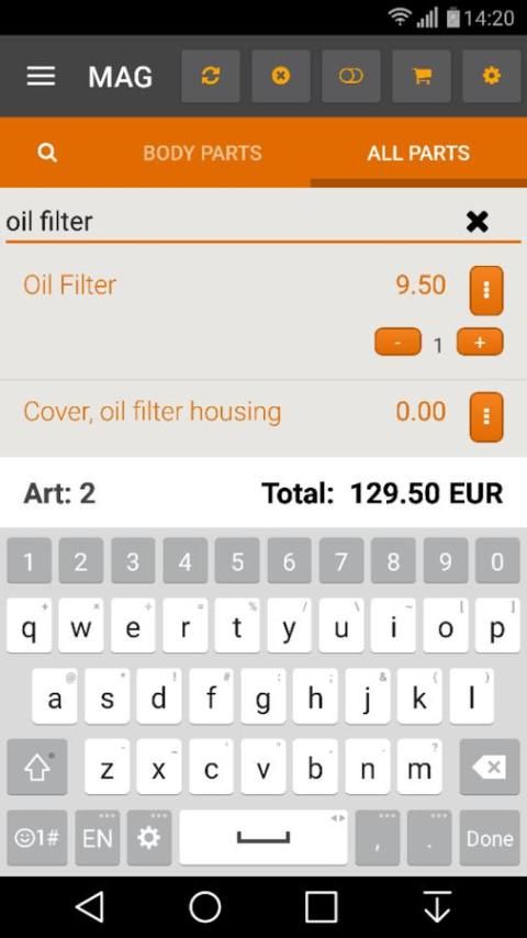 * वाहन भागों के मैनुअल विन्यास के लिए मोबाइल आवेदन अपने वाहन के लिए सूचीबद्ध करता है।