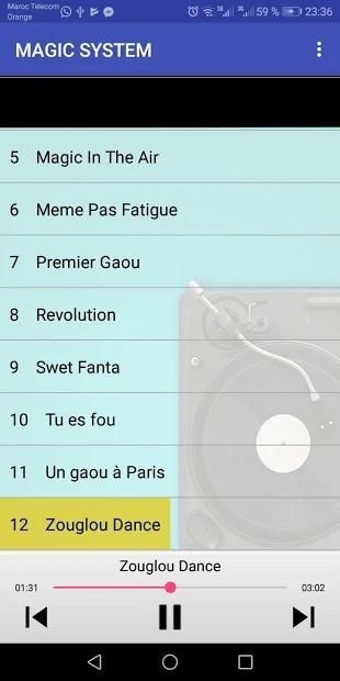 एप्लिकेशन में निम्नलिखित गाने शामिल हैं