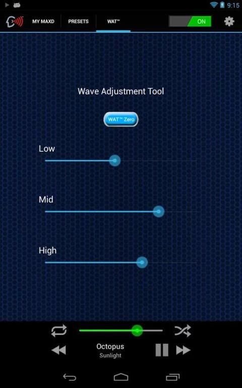 - Floating "Wave Adjusting Tool" (WAT TM) for customization of audio Low, Mid, and Hi range