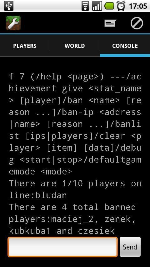 यह आप खिलाड़ियों, banlist, दुनिया गुण दूर से आसान तरीके से अपने Android से प्रबंधित करने की अनुमति देता है, आप भी सांत्वना आदेश भेज सकते हैं.