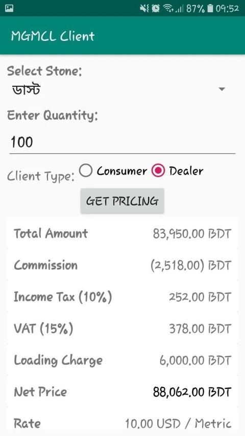 This App is developed for Client and Dealer of Moddhopara Granite Mining Company Limited. This mobile app will help our consumer and dealer to calculate current value of any order