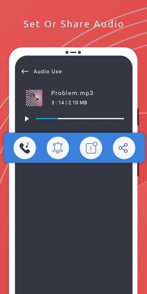 एमपी 3, WAV, AAC, AMR, और अधिकांश अन्य संगीत प्रारूपों का समर्थन करें। यह ऐप एक म्यूजिक एडिटर भी है | अलार्म टोन निर्माता | रिंगटोन कटर और अधिसूचना टोन निर्माता।