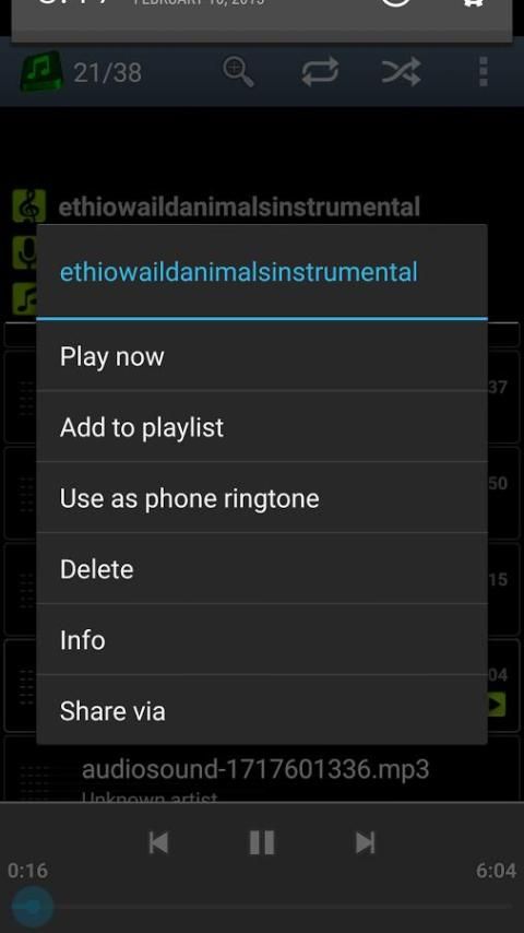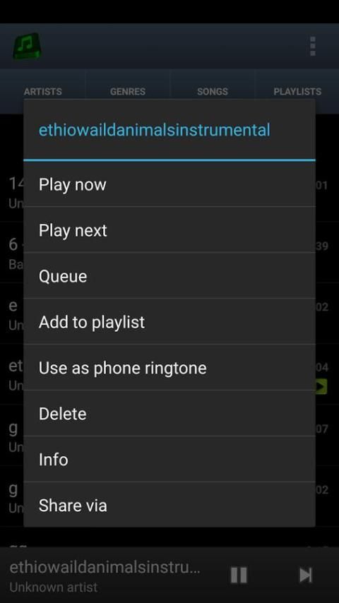 • रिंगटोन के रूप में सेट ट्रैक (लंबी प्रेस किसी भी अनुप्रयोग के माध्यम से फोन रिंगटोन, जानकारी, शेयर के रूप में प्रयोग करने या हटाने के लिए, प्लेलिस्ट में जोड़ने के लिए)