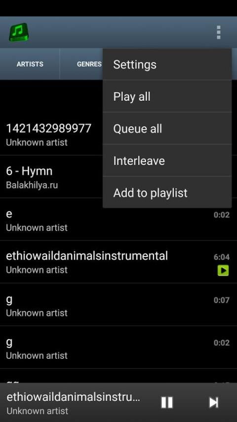 • वर्तमान में गीत दृश्य खेलने से कलाकार / एल्बम / शैली के लिए गीतों की सूची के लिए सीधे छलांग