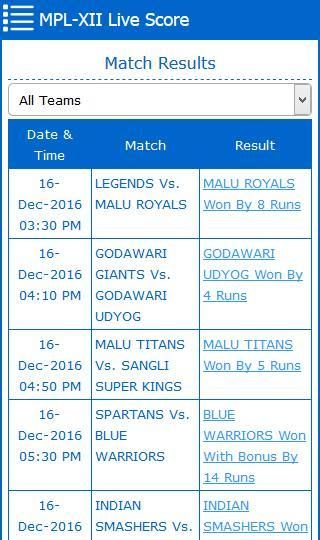 इस एप्लिकेशन के माहेश्वरी प्रीमियर लीग, सांगली के लिए विकसित कर रहे स्थानीय क्रिकेट टूर्नामेंट के लिए लाइव क्रिकेट स्कोर प्रदान करना है। इस एप्लिकेशन के प्रदान करता है लाइव क्रिकेट स्कोर, मेल अनुसूची, पुराने मैच परिणाम, विभिन्न Statastics, आदि