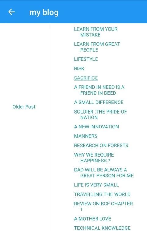 ब्लॉग आपको किसी व्यक्ति के कुछ महान ज्ञान और अनुभव प्रदान कर सकता है। यह एप्लिकेशन उपयोग में सरल है। इस एप्लिकेशन को यशराज डेवलपर्स द्वारा विकसित किया गया है।