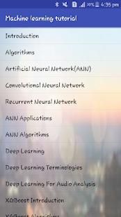 ट्यूटोरियल एक उपयोगकर्ता मशीन learning.This अनुप्रयोग के महत्वपूर्ण अवधारणाओं को पता कर सकेंगे पूरा करने के बाद अभी शुरुआत महावत-मशीन लर्निंग की एक पूरी अवधारणा सिखाता है।