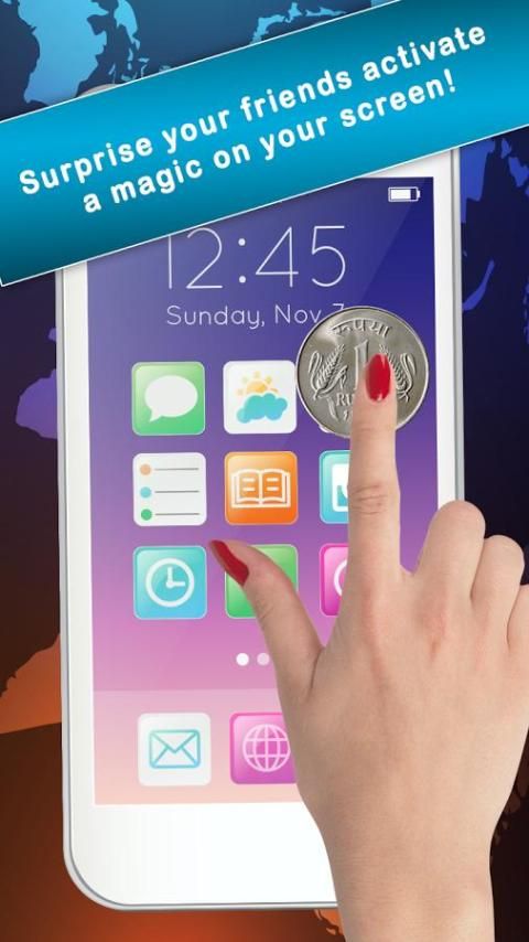Magic सिक्का Trick आप अपने फोन की स्क्रीन में दिलचस्प सिक्का करके अपने दोस्तों को प्रभावित कर सकते हैं इस सिक्का जादू चाल एप्लिकेशन के साथ।