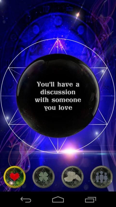 Select one of the four themes (love, money, friendship, luck), concentrate and play the ball ... Watch out for her tips for the future! But only you can decide whether to pay attention and take advantage of their knowledge or ignore it and go on your way ...