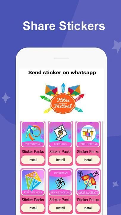 यह मकर संक्रांति त्योहार है इसलिए यह ऐप उपयोगकर्ताओं के लिए विभिन्न पतंग स्टिकर WAStickers के बहुत सारे प्रस्तुत कर रहा है।