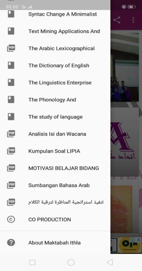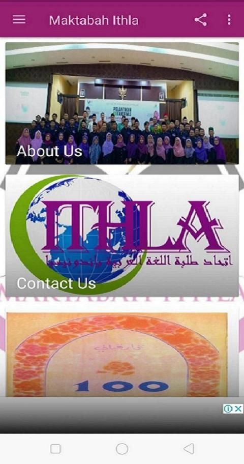 Aplikasi "Maktabah Ithla" merupakan aplikasi yang digagas oleh Ithla Indonesia khususnya pada bidang Penelitian dan Pengembangan, aplikasi ini berisi kitab-kitab dan bacaan puisi dan lainnya yang berkaitan dengan jurusan kebahasaaraban. Aplikasi "Maktabah Ithla" ini sangat membantu bagi mahasiswa terutama jurusan kebahasaan khususnya bahasa arab untuk mencari beberapa referensi tentang literatur bahasa arab.