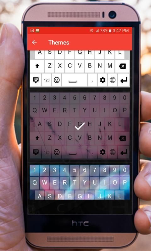 मलयालम कीबोर्ड सबसे सुंदर और आकर्षक विषयों के साथ बनाया गया है। आप कई विषयों के बीच चयन कर सकते हैं। सबसे सूट है कि आप मलयालम अक्षर लिखने के लिए विषय का चयन करें।