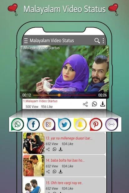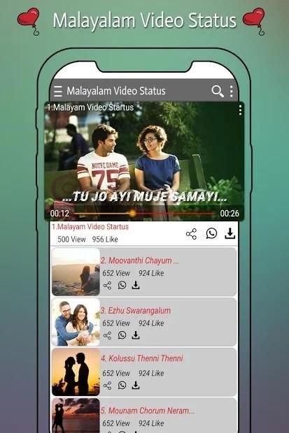 मलयालम वीडियो स्टेटसैप मलयालम संस्कृति, मलयालम लव, मलयालम सैड, मलयालम रोमांटिक और मलयालम सुपर हिट वीडियो का सबसे बड़ा संग्रह देता है।