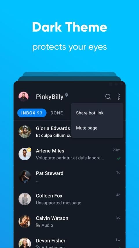 हर जगह अपने ग्राहकों के साथ चैट करें। एक वार्तालाप में शामिल हों और प्रश्नों का उत्तर दें, ग्राहक डेटा प्रबंधित करें (टैग जोड़ें, अनुक्रम की सदस्यता लें, कस्टम फ़ील्ड मान जोड़ें, आदि)