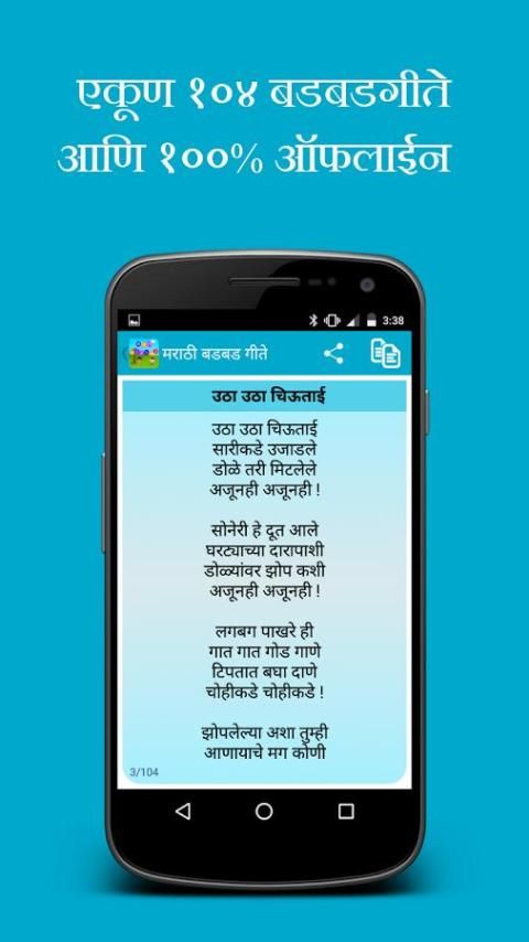 Free and secured download of Android apps on 9Apps. 20,000+ users downloaded मराठी बडबड गीते latest version on 9Apps for free every week! Many latest version apps provided on 9Apps too. This hot app was released on 2017-11-25. 9Apps has thousands of apps and updated daily!