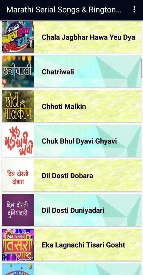 Some India application are update now! 20,000+ users downloaded Marathi Serial Songs & Ringtones latest version on 9Apps for free every week! With unexpected, recently it has become very popular in India. This hot app was released on 2019-05-31. Why not download and play it now?