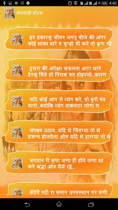 सिंगल क्लिक में आसानी के साथ WhatsApp मित्र और समूह पर मारवाड़ी भाषा में शेयर स्थिति .. श्रेणी के साथ नई स्थिति हर रोज आपके मूड को सूट।