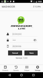 Mashkoor लाइट एक मोबाइल वीओआईपी डायलर आवेदन Android उपकरणों में से किसी से कॉल करने की अनुमति देता है और इसे इस्तेमाल करता 3 जी / एज / वाई-फाई इंटरनेट connectivity.It वीओआईपी प्रदाता व्यापार की जरूरत की आवश्यकताओं के आधार पर विकसित की है