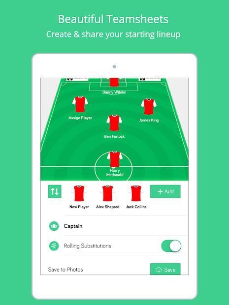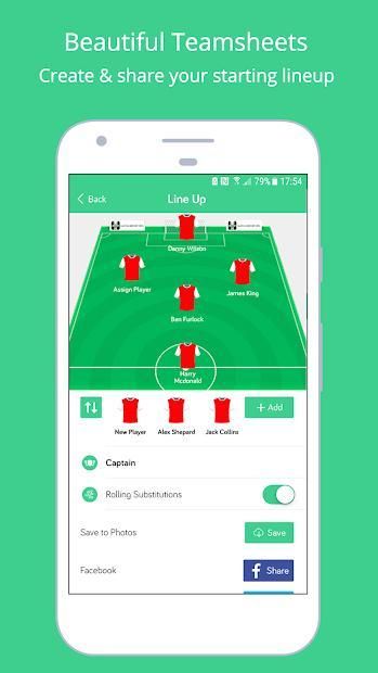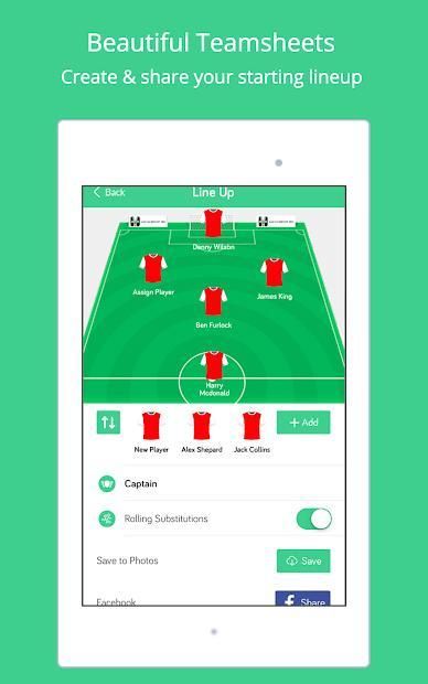 - LINE UPS & SOCIAL SHARING: Amazing graphics to show your line ups and easily share whats happening during the match