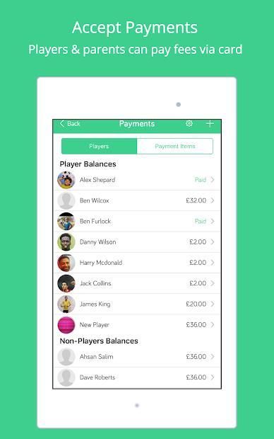 - उपलब्धता: बटन के स्पर्श पर अपनी टीम को पुश अधिसूचनाएं और ईमेल भेजें और देखें कि प्रशिक्षण / मैचों में कौन भाग ले सकता है।