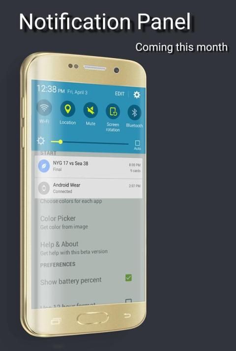 Use the Drop Down Panel to complement with your colored status bar and enjoy TouchWiz-like features or Stock Android.