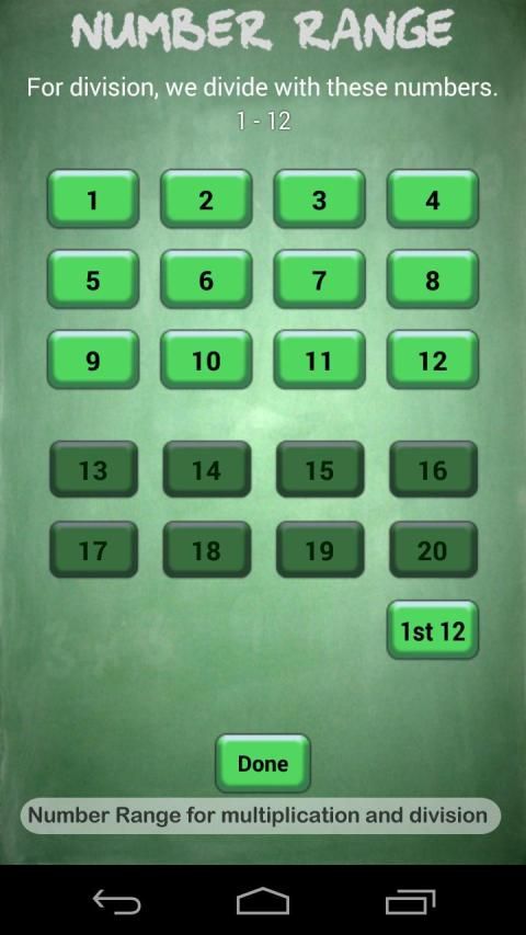 • संख्या सीमा: गुणन और विभाजन के लिए 0 से 20