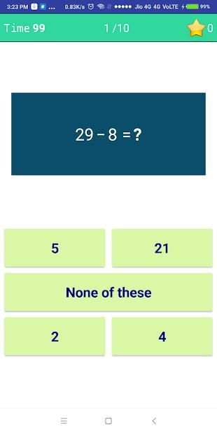 There are many features in this app which you will like. Such as Collect Star, Win Diamond, Gold, Silver Level and Level up your math-skills now!