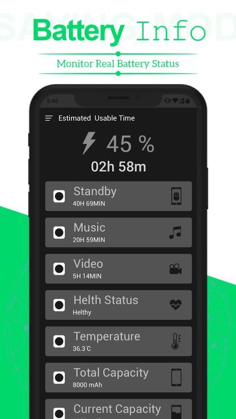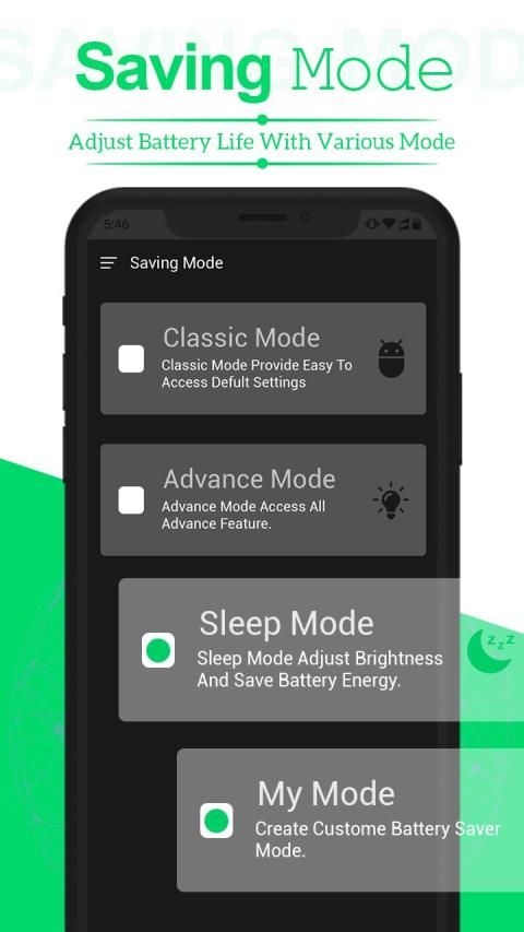 विशेषताएं: सेविंग मोड, स्लीप मोड सेविंग और कस्टमाइज्ड सेविंग। जब आपको एक टैप से इसकी आवश्यकता हो तो बैटरी बचाएं।