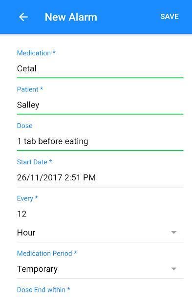 You can create permanent or temporary alarm and you can edit alarm for variable doses.